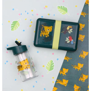Go and have an adventure in the jungle, but don’t forget your cool jungle tiger drink bottle. The drink bottle is made of PETG, closes with a handy twist lid and has the perfect size for traveling or school. The drinking tip prevents spilling. Use the included sticker sheet to decorate all your adventure themed items.