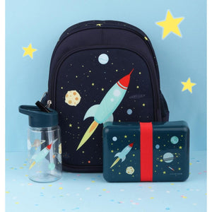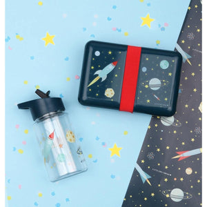 This cool water bottle is a must have item for every astronaut to be. The drink bottle has a twist lid, convenient drinking tip and a perfect size to take along to every (space) adventure. Extra fun detail: decorate your other space items with the space stickers that come with the water bottle.
